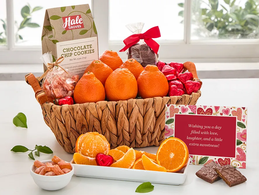 Gleaming gold? Check. Luscious chocolate? Check. Love really is in the air when our keepsake gift basket arrives, bearing a collection of fruit and sweets that will turn traditional Valentine's Day gifts on their heads!
