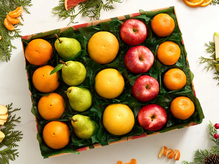 Our five-in-one collection delivers fresh flavor by the boxful. Whether you send it as a gift or order one for your own family, these are truly winter’s brightest jewels, sure to delight and impress. Includes Grove Navel Oranges, Orchard Apples, Ruby Red Grapefruit, Honey-Sweet Tangerines and D’Anjou Pears.