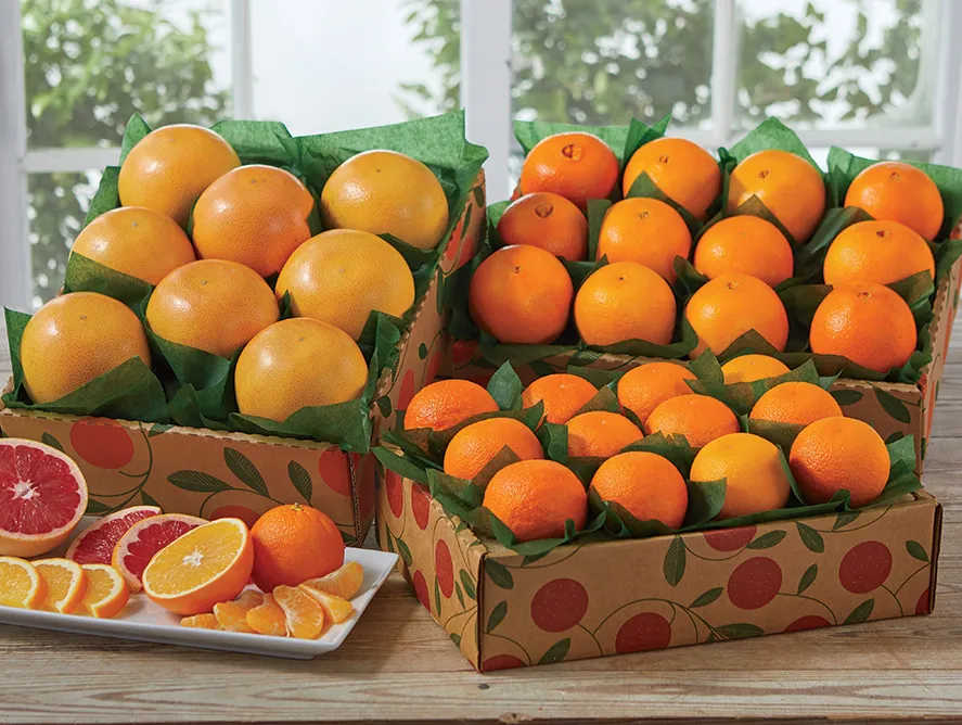 Here's a gift with impact: over 20 lbs. of three favorite citrus flavors! Send a full box each of luscious, seedless Grove Navel Oranges, easy-peel Honey-Sweet Tangerines and sweet Ruby Red Grapefruit to a lucky family, friend or client; it’s enough to share for weeks!