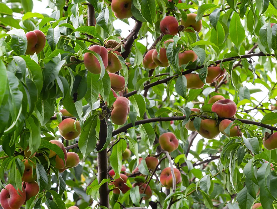 Just the right size for snacking, this delightful peach fits perfectly in your palm and is exceptionally juicy. Beneath its thin, gold-and-red skin, the tender white flesh is low in acid so it’s scrumptiously sweet.